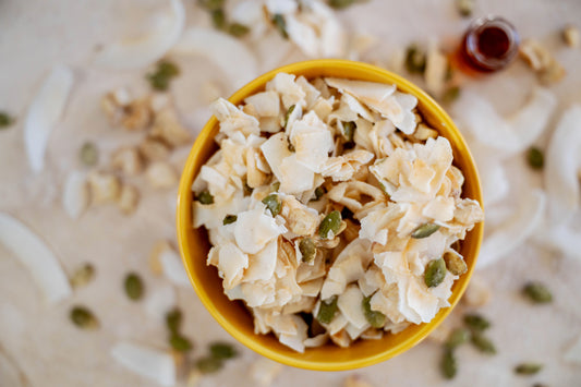 "My new favorite snack! Organic coconut, cashews, pumpkin seeds, organic maple syrup, and sea salt. This mix is satisfyingly crunchy, perfectly balanced sweet and salty snack. It's also Keto Friendly!"