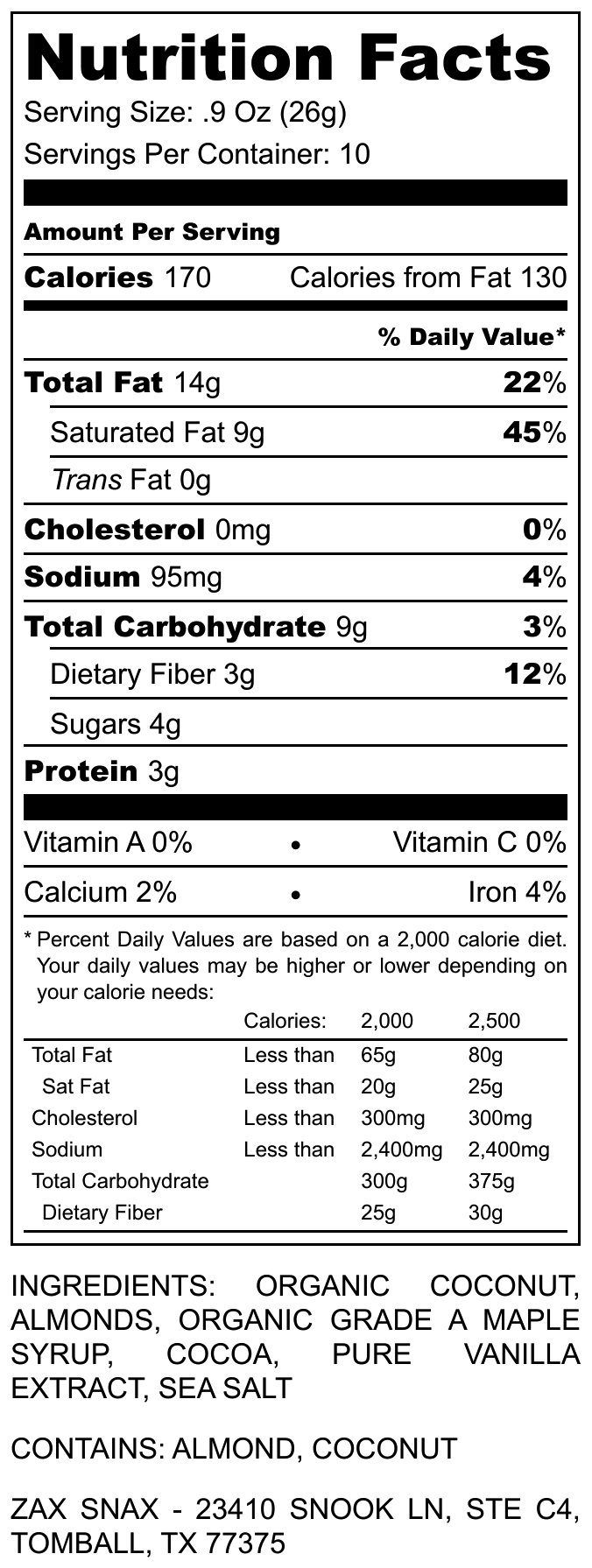 Cocoa Coco is a flavorful merge of organic coconut, cocoa powder, sliced almonds, pure vanilla, organic grade A maple syrup, and sea salt.